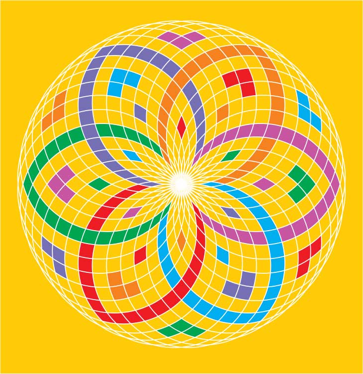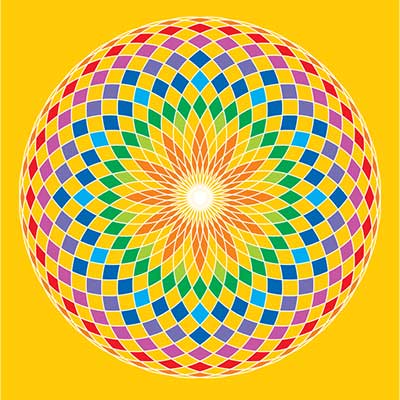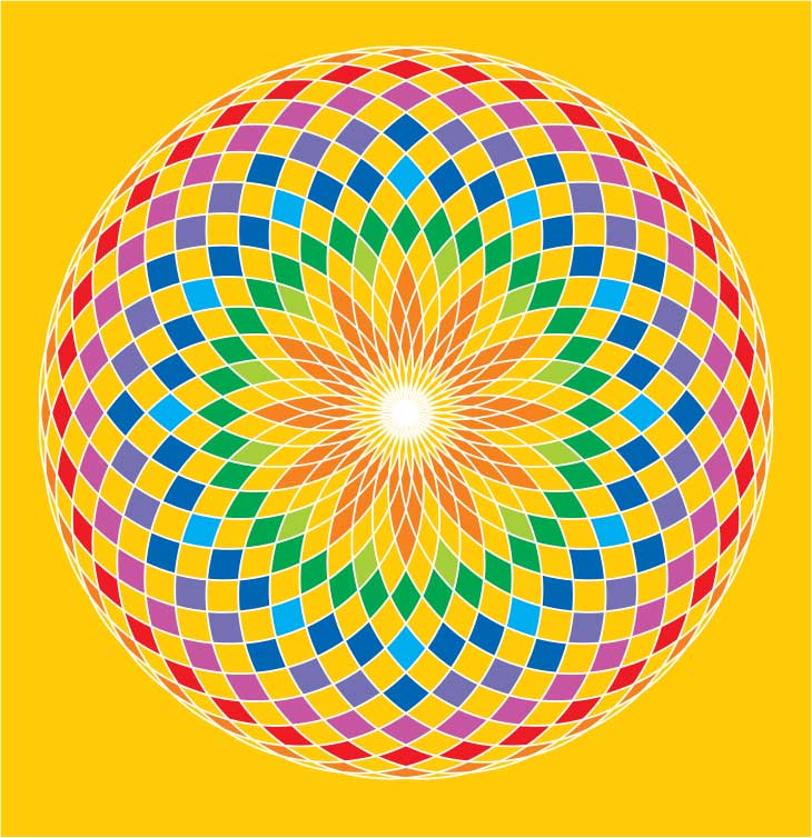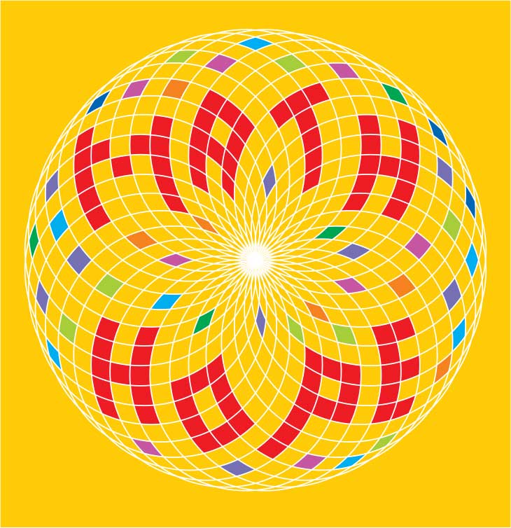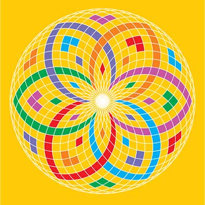 This poster, based on a circular rosette pattern, comes in two versions: full-color, and a black-and-white one which you and your friends can color to add your creative touch and make it unique.