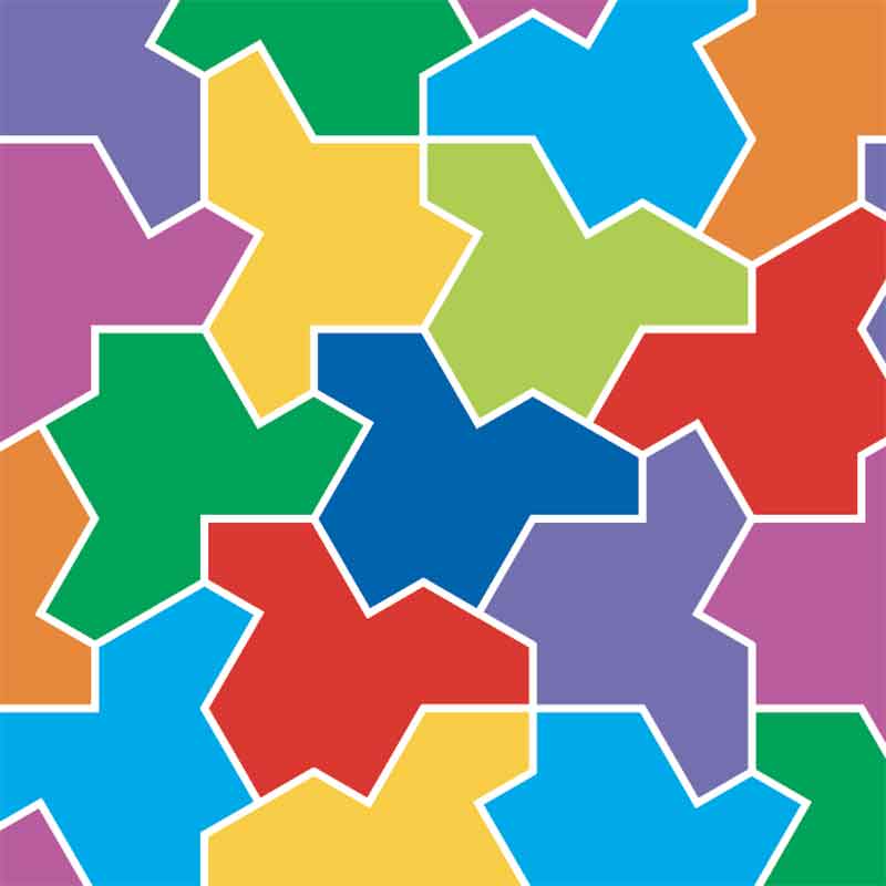 New! A game with tiles of different shapes: triangles, squares, hexagons, and the new Einstein tile. Try to put them next to each other without leaving any space between them and without the tiles overlapping.